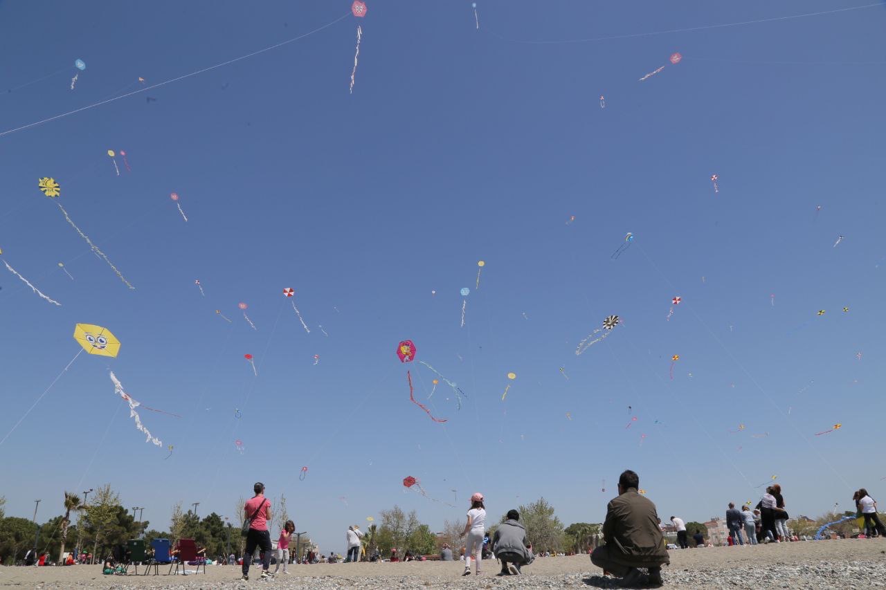 Belediyenin dağıtımının yanı sıra uçurtmalarını yanında getiren yaklaşık 3 bin kişi, rengarenk uçurtmalarını havalandırdı.