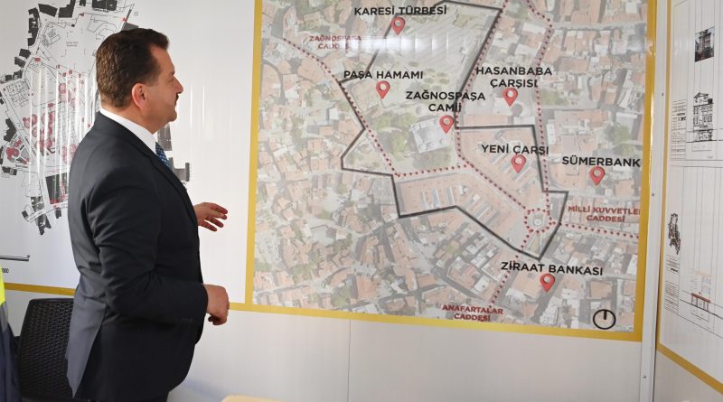 Balıkesir şehir merkezinde yaklaşık 50 bin metrekarelik alanda meydan düzenleme, sokak sağlıklaştırma ve cephe iyileştirme çalışmaları yürüten Büyükşehir Belediyesi; Zağnos Paşa Camisi ve Şeyh Lütfullah Camisi meydanlarının düzenleme çalışmaları ile Kazım Özalp Sokak’taki tarihi binaların restorasyonlarını tamamlıyor.