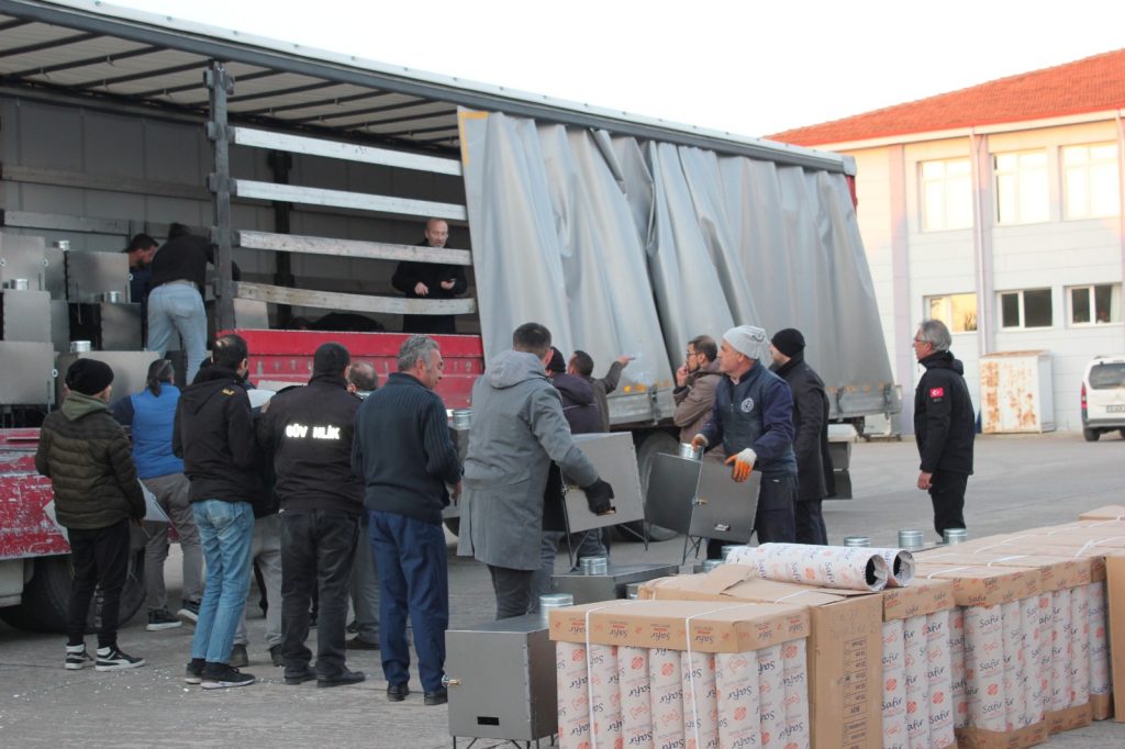 Bölgedeki ihtiyaçlara yönelik çalışmalar kapsamında, Edremit Meslek Yüksekokulu tarafından ilk etapta üretimi tamamlanan 51 adet odun sobası ve ekipmanları ile Havran Meslek Yüksekokulu tarafından temin edilen yakacak malzemeler bölgeye sevk edildi. Çalışmalar kapsamında ayrıca seyyar sahra tuvalet kabini de üretilmeye başlandı. Edremit Meslek Yüksekokulu Müdürü Doç. Dr. Raif Sakin ile Öğr. Gör. Hasan Demirhan ve Havran Meslek Yüksekokulu Müdürü Dr. Öğr. Üyesi İsmail Atabay’ın koordinasyonunda yürütülen soba üretimi ve yakacak desteği çalışmaları, 160 adet yeni soba üretimi ve yakacak desteği temini ile devam edecek.