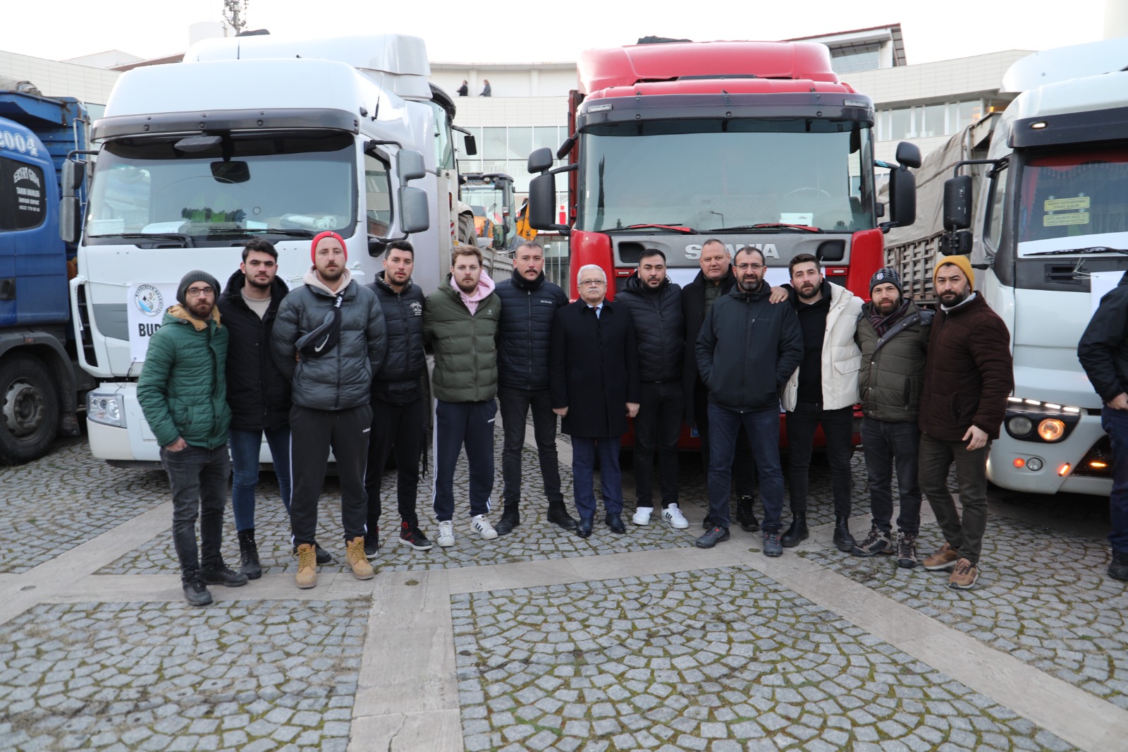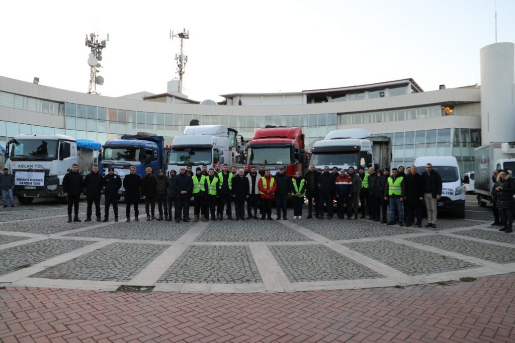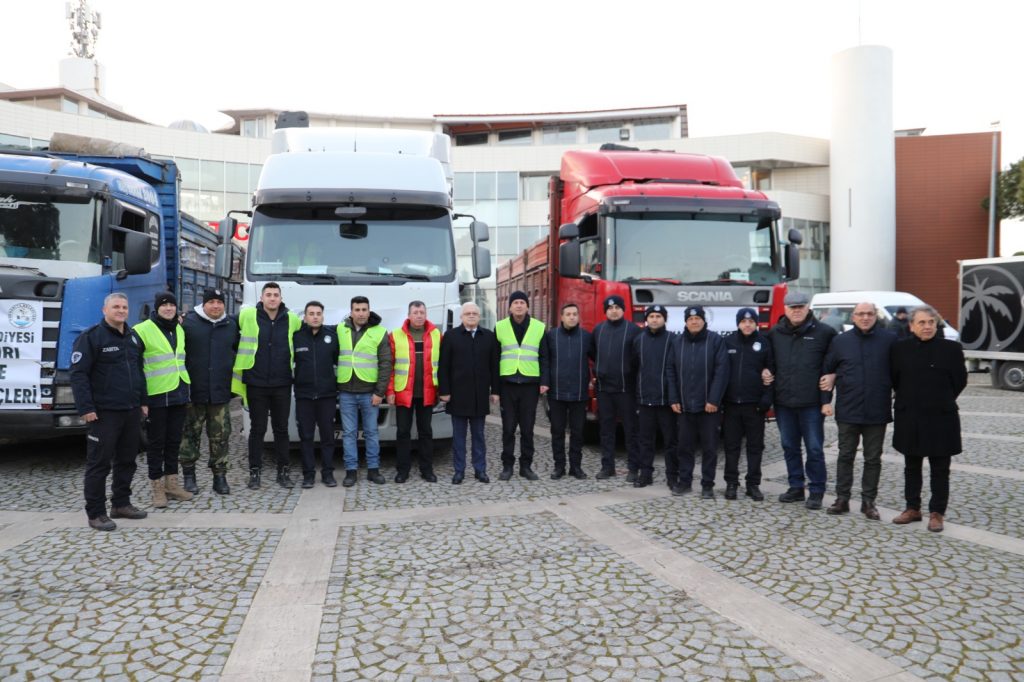 Burhaniye’den tırlar, deprem bölgesine doğru yola çıktı.