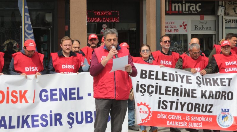 DevamDİSK/Genel-İş Sendikası Balıkesir Şube Başkanı Hüseyin Ovalı, yaptığı basınaçıklamasında belediye şirket işçilerinin kamu işçisi olduğunu, kadroistediklerini bir kez daha ifade