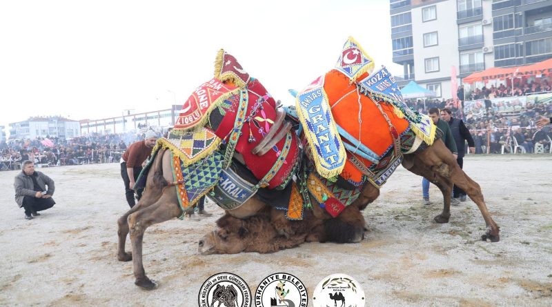 DevamBurhaniye Belediyesi tarafından 18. Burhaniye Zeytin ve Zeytinyağı Hasat Festivalikapsamında düzenlenen Geleneksel Deve Güreşlerindeki Number One -Taşçı Beyadlı develerin güreşi,