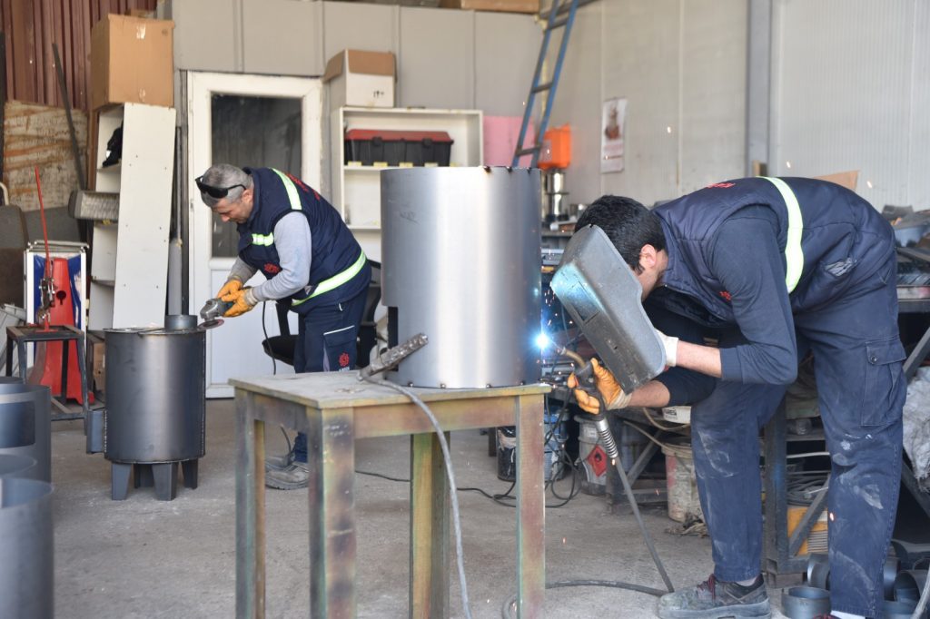 ekipleri, imal etmeye başladığı sobaları ve vatandaşlar ile belediye personellerinin desteğiyle