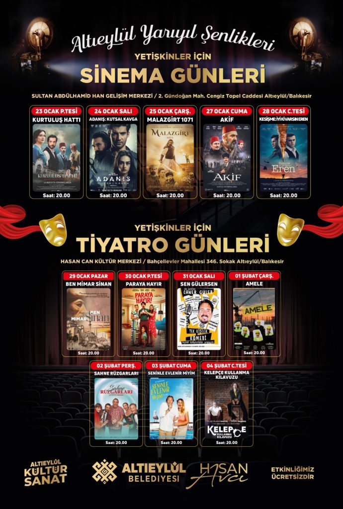 Tiyatro günleri ise Hasan Can Kültür Merkezinde 29 Ocak Pazar